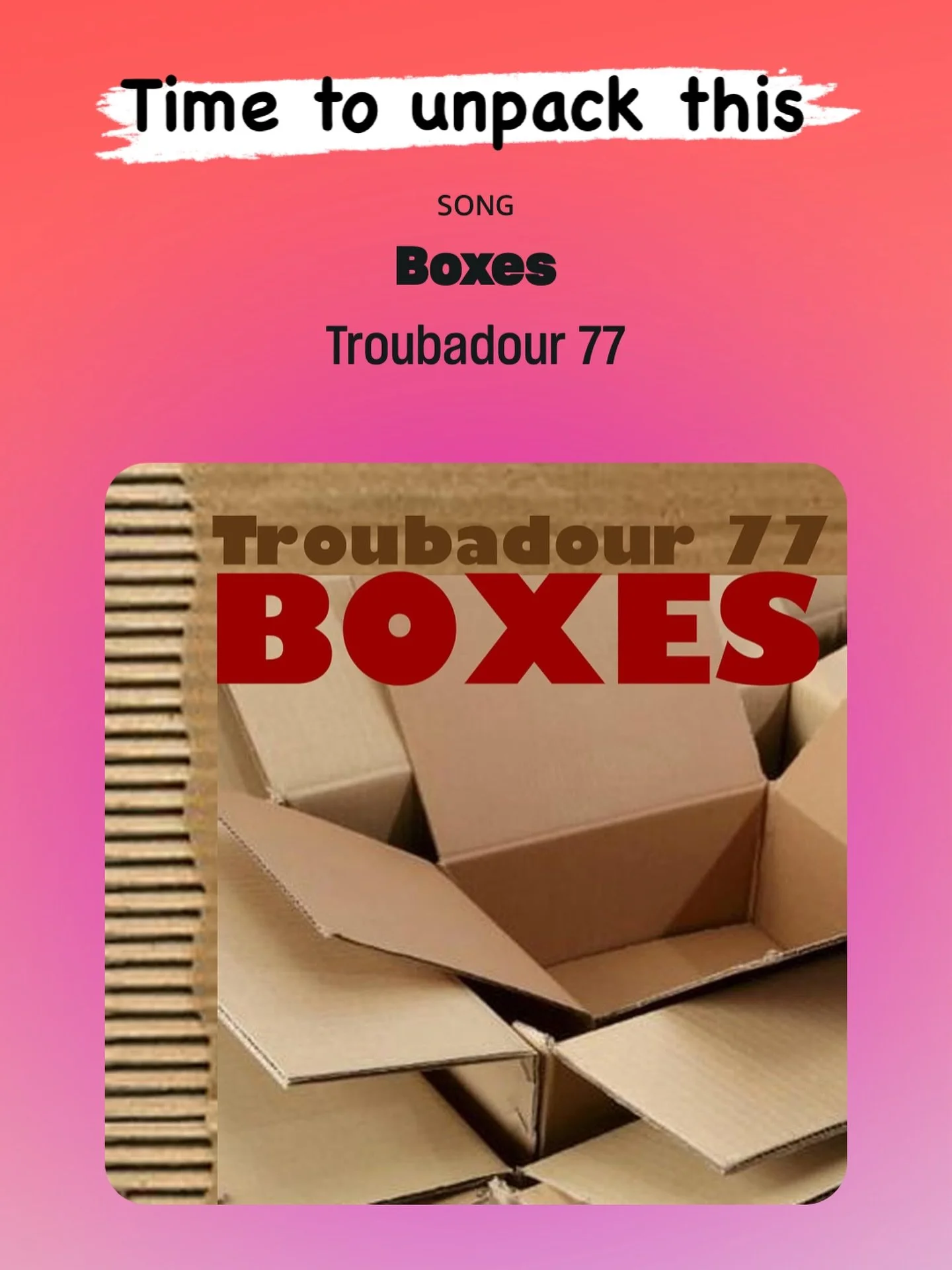 Hello Everybody! We’ve stepped away from releasing music for a long time…6 years to be exact…but we are finally re-emerging and have some new music to share! When Covid lockdown hit back in 2020 we were on the verge of launching a tour that was to begin on March 15, 2020 (the day it all shut down). Like everyone, we cancelled everything and went into our “bubble” and our “boxes” … the boxes on our computer screens and a lot of other boxes too. We spent the past few years moving around … A LOT… 13 times in 5 years! So I guess you could say we got very acquainted with “boxes.”